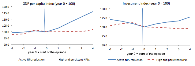 分析顯示,減少不良貸款率的國家比那些讓不良貸款率停滯不前的國家經歷了更快的GDP增長和更多的投資。我們發(fā)現被動組的這種效應更強,但沒有統計學意義。在積極行動的情況下,其結果明顯好于拖延癥群體——每年,不良貸款問題沒有得到解決,就人均GDP增長而言,經濟損失超過兩個百分點(圖3)。