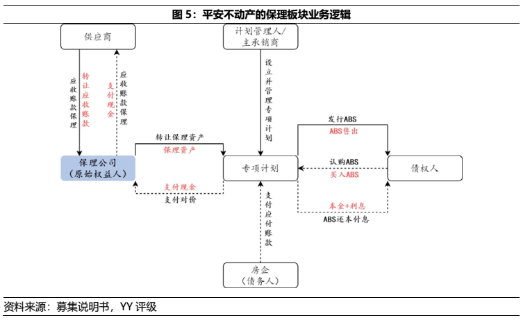目前平安不動(dòng)產(chǎn)的保理業(yè)務(wù)主要由深圳市前海平裕商業(yè)保理有限公司開展。現(xiàn)階段商業(yè)保理公司主要依賴其股東進(jìn)行融資,而平安不動(dòng)產(chǎn)背靠中國平安長久期、低成本的銀彈支持之下,則無后顧之憂,僅需聚焦在結(jié)構(gòu)化分層時(shí)的差額支付承諾風(fēng)險(xiǎn)。19年末、20年中,平安不動(dòng)產(chǎn)的應(yīng)收賬款融資分別為7.76億元和39.32億元,即保理業(yè)務(wù)增長所致,也反映了相應(yīng)的風(fēng)險(xiǎn)。