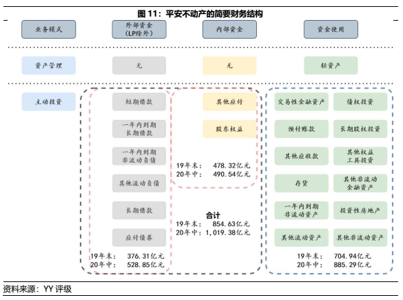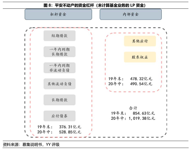 根據(jù)平安不動(dòng)產(chǎn)20年中報(bào)公示的主要債權(quán)投資(未完全披露)收益5.90%,經(jīng)扣除平安不動(dòng)產(chǎn)相關(guān)投后管理費(fèi)用和成本費(fèi)用,恐怕無法有效覆蓋資金成本。因此,布局股性地產(chǎn)投資業(yè)務(wù)和充份運(yùn)用杠桿成為了平安不動(dòng)產(chǎn)提升收益率的必要手段。