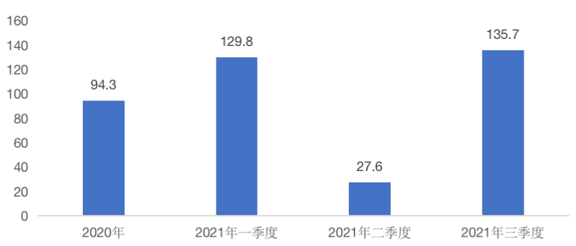 圖:2020年-2021年三季度并購(gòu)總額