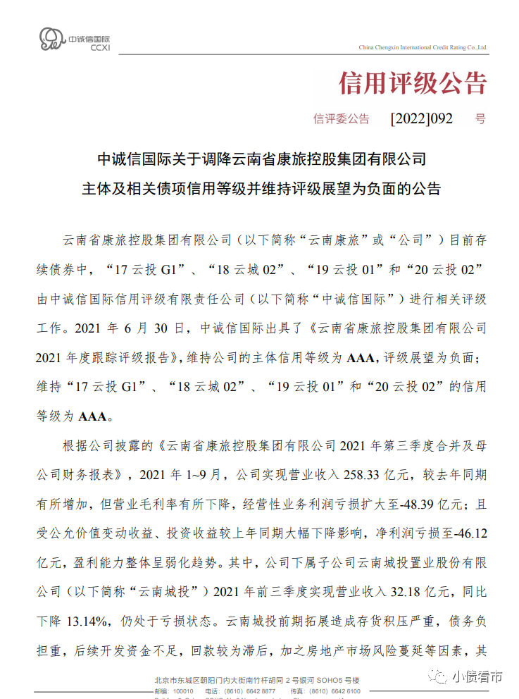 此前,2021年12月聯(lián)合資信也將云南康旅評級展望由“穩(wěn)定”調(diào)整為“負(fù)面”,其信用資質(zhì)已持續(xù)惡化。