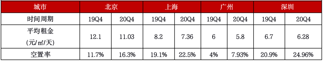 一線城市寫字樓關(guān)鍵指標變化情況