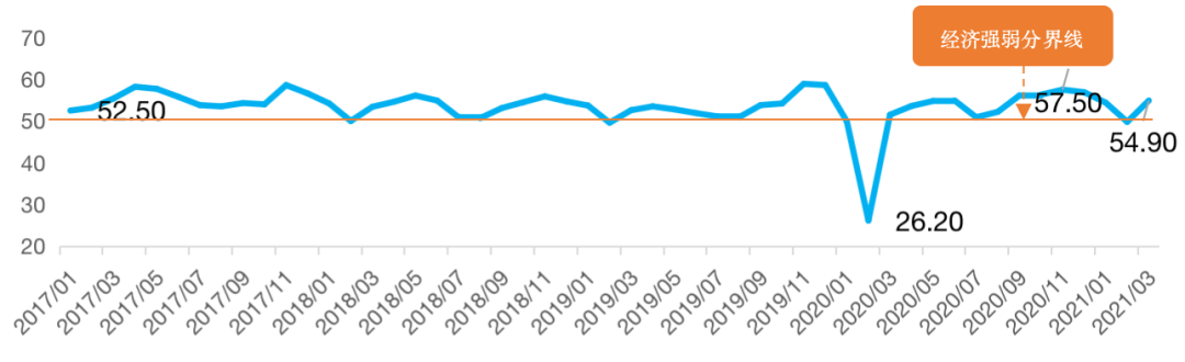 據(jù)中國物流與采購聯(lián)合會2021年4月初發(fā)布的數(shù)據(jù)顯示,2021年3月份中國物流業(yè)景氣指數(shù)為54.9%,較上月回升5.1個百分點;中國倉儲指數(shù)為52.7%,較上月回升3.8個百分點。隨著我國生產(chǎn)建設(shè)季節(jié)到來,供應鏈上下游經(jīng)營活動復蘇,我國物流業(yè)景氣指數(shù)重回50%以上擴張區(qū)間,呈現(xiàn)明顯回升態(tài)勢。