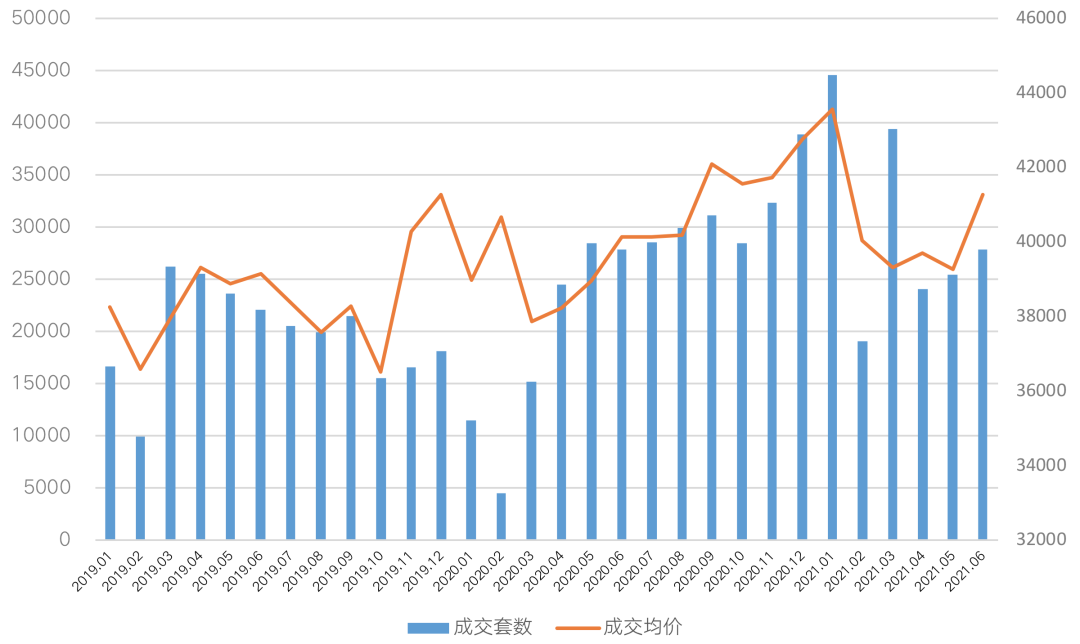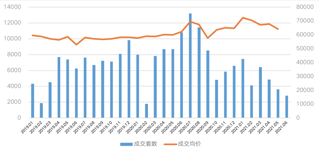 圖:2019年1月-2021年6月上海二手住宅成交量價