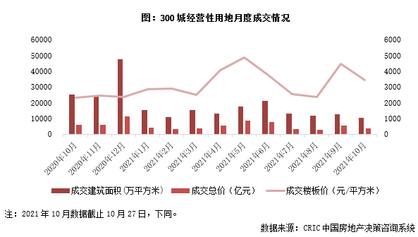 10月,樓市延續9月低迷行情,土地市場本月溢價率創下歷史新低。