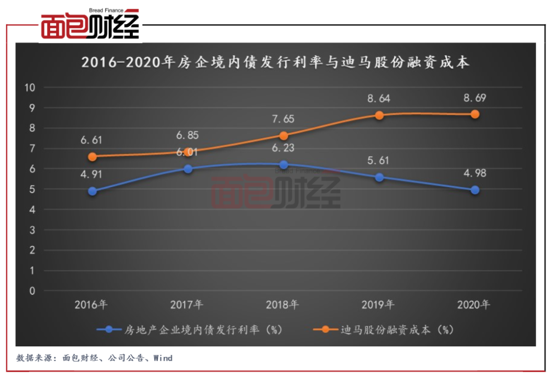 圖1:2016-2020年房企境內債發行利率與迪馬股份融資成本
