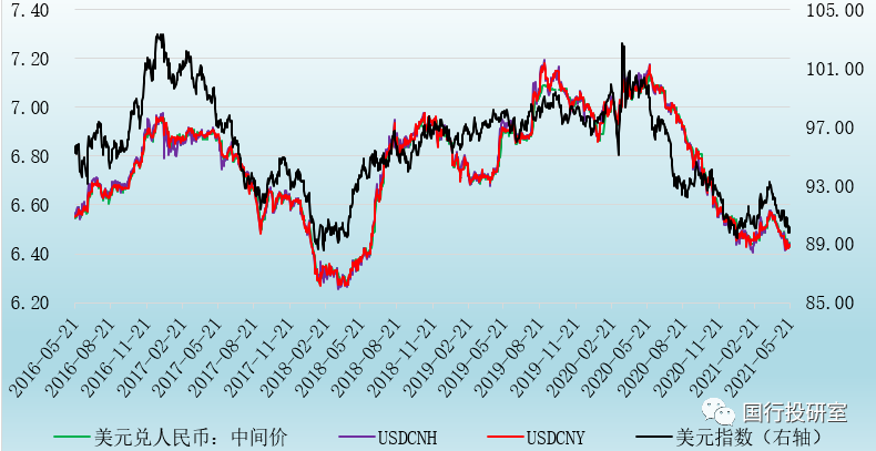 保持人民幣匯率在合理均衡水平上的基本穩定,這一提法雖然沒有新意,但若和5月19日的國務院常務會議結合在一起考慮則有另一番味道,如“保持貨幣政策穩定性和人民幣匯率在合理均衡水平上的基本穩定……幫助市場主體應對成本上升等經營困難”,這種情況下我們大膽判斷,在輸入性通脹壓力沒有得到有效緩解的情況下,央行會根據情況適度對人民幣進行干預,而人民幣匯率應會保持穩定甚至有一定升值(至少不會趨勢性貶值),以避免人民幣貶值和成本上升疊加給國內市場主體帶來的壓力。