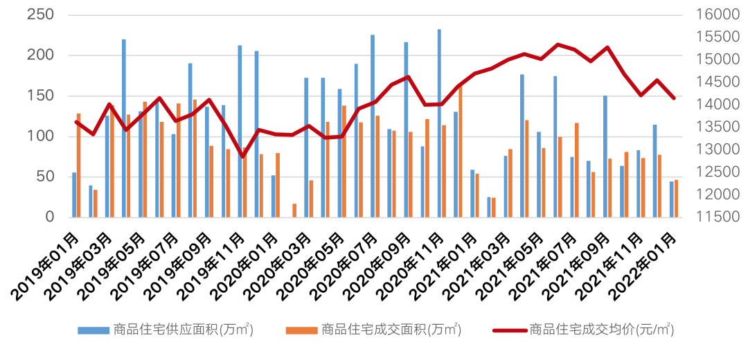 2022年前兩個月房地產市場并不樂觀,整體供應、需求和價格都呈現下行趨勢。