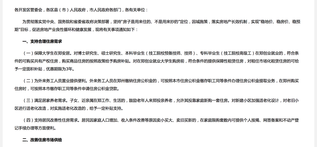 1.有針對性取消限購,允許部分家庭新購一套住房。對子女、近親屬在鄭工作、生活的,鼓勵老年人來鄭投親養(yǎng)老,允許其投靠家庭新購一套住房。