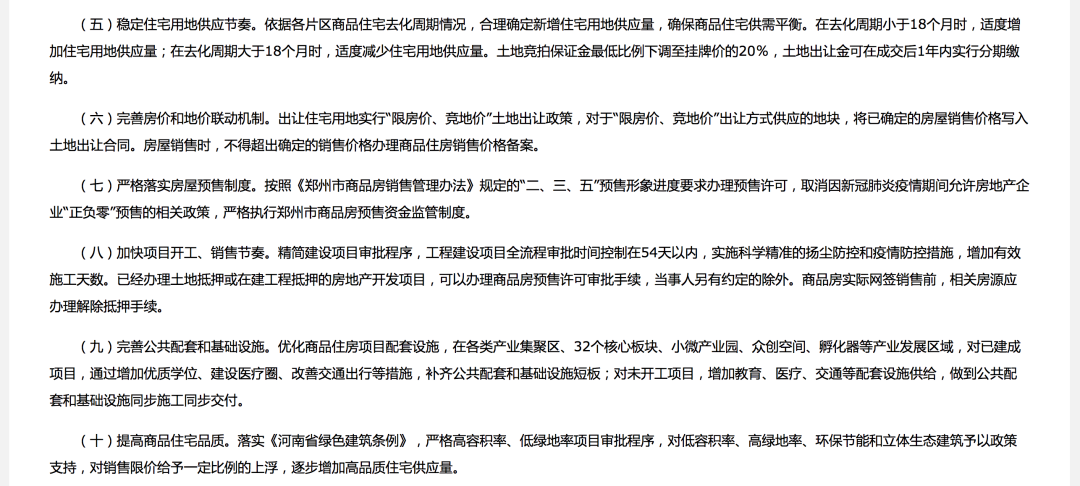 4.減輕主體壓力,調整土地出讓規(guī)則。土地供給端下調土地競拍保證金最低比例至掛牌價的20%,土地出讓金可在成交后1年內實行分期繳納。