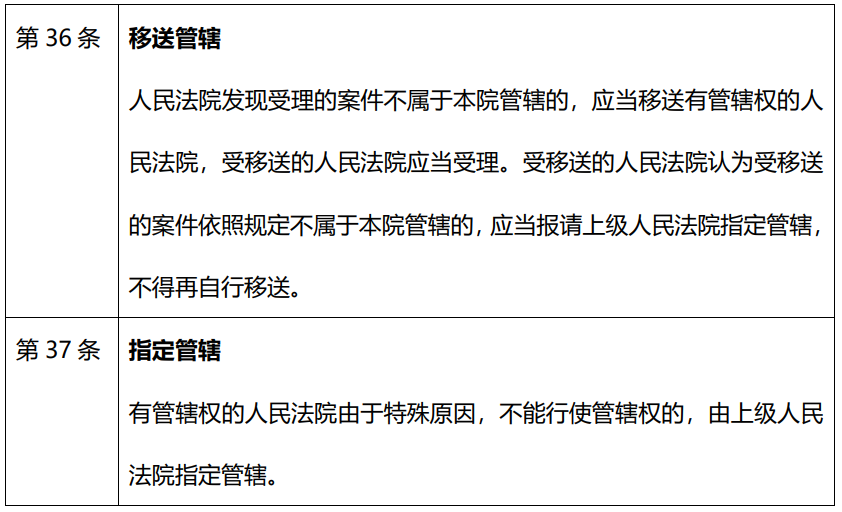 在我們處理的案件中, 大部分法院裁定都是通過援引《民事訴訟法》第三十六條、三十七條的方式移送管轄的, 其條文如下: