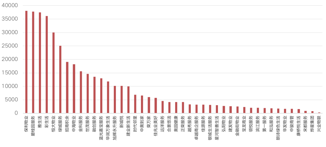 圖:2020年上市物企在管規模情況(萬平方米)