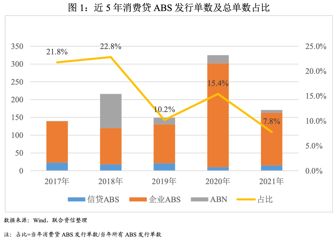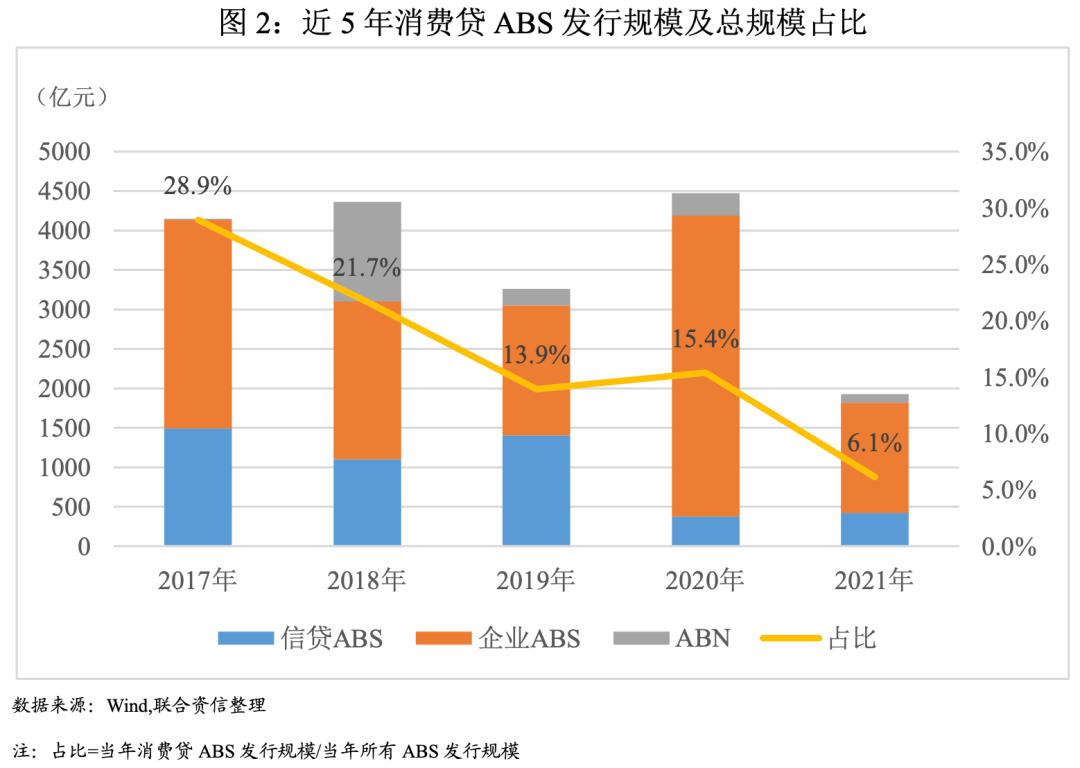 2、近5年消費貸ABS發行呈波動下降趨勢