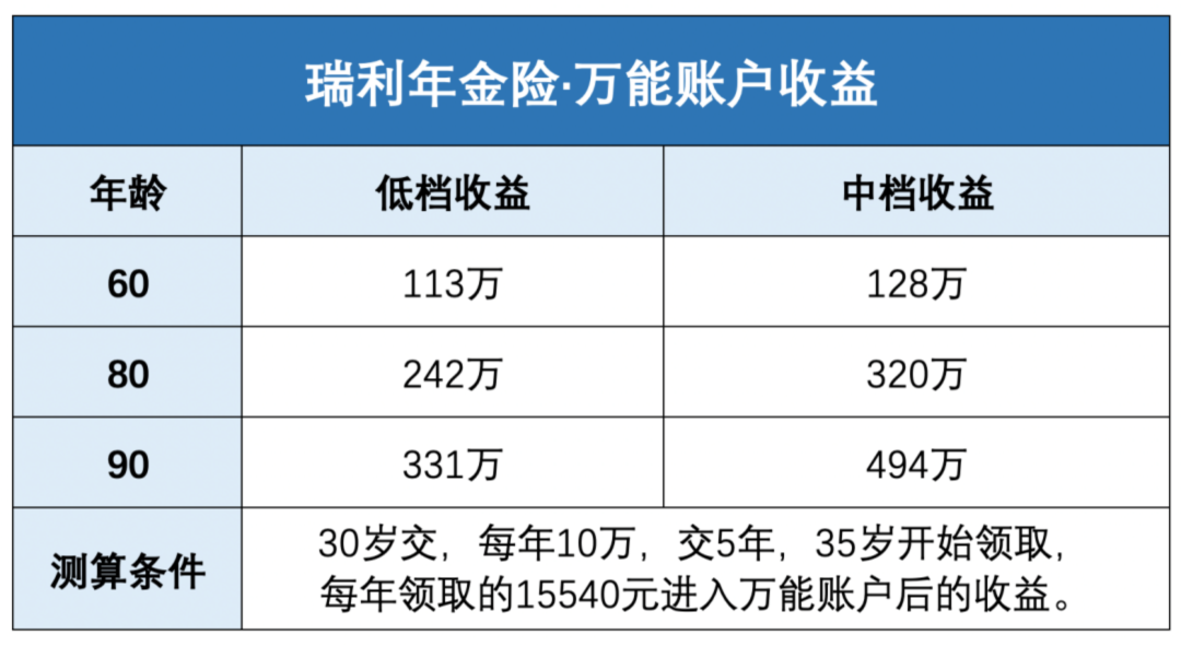 就是買了瑞利年金保險(xiǎn),5年后可以開始領(lǐng)錢,如果不著急用錢,錢可以轉(zhuǎn)入萬(wàn)能賬戶。
