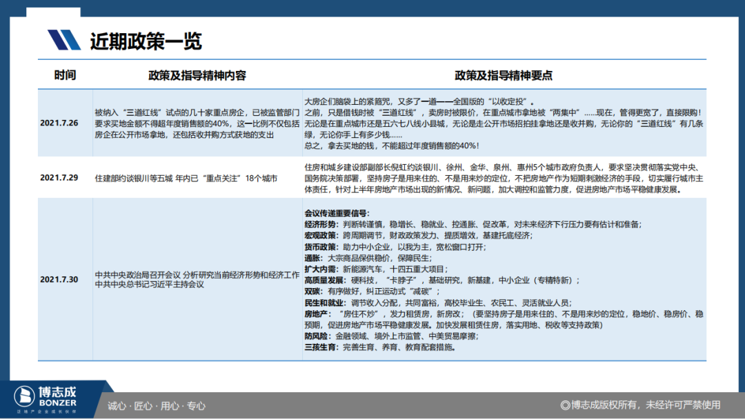 7月30日,中共中央政治局會議閉幕,對房地產業再次提出了要穩地價、穩房價、穩預期,促進房地產市場平穩健康發展的要求。