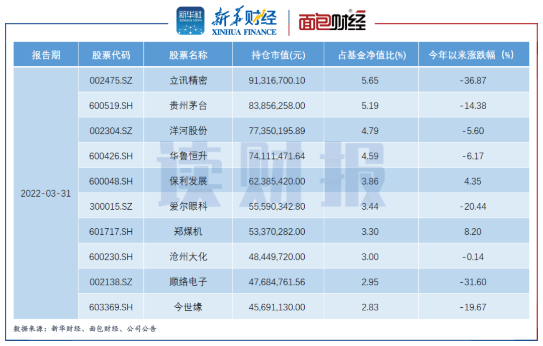 基金2022年一季度末的持倉中,截至2022年5月27日,第一大重倉股立訊精密年內下跌超過35%、另一家電子行業企業順絡電子也下跌超過三成。
