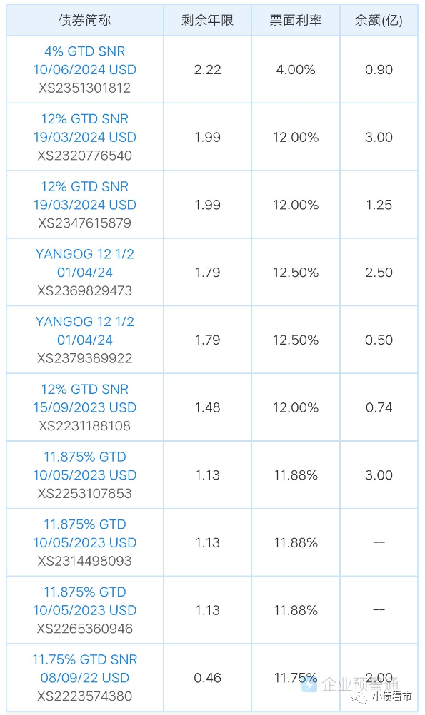 3月11日,陽光集團存續1.06億美元境外債券“YANGOG 12.5 02/20/22”發生本息實質違約,3億美元“YANGOG 12.5 01/04/24”利息實質違約,應付利息1875萬美元。