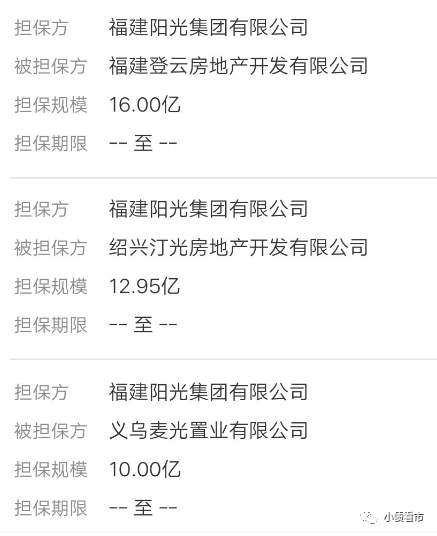 另外,陽光集團對外擔保規模較大,面臨一定代償風險。