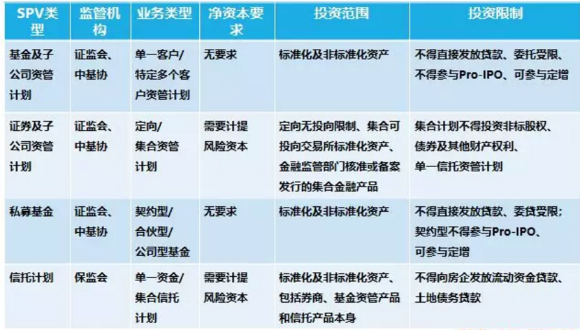 投資主體(SPV公司):投資形式主要有股權(quán)投資計劃、信托計劃、私募股權(quán)投資基金等