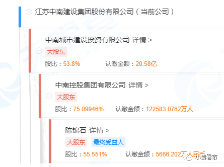 從股權結構看,中南建設的控股股東為中南城建,持股比例為53.85%,公司實際控制人為陳錦石及一致行動人。
