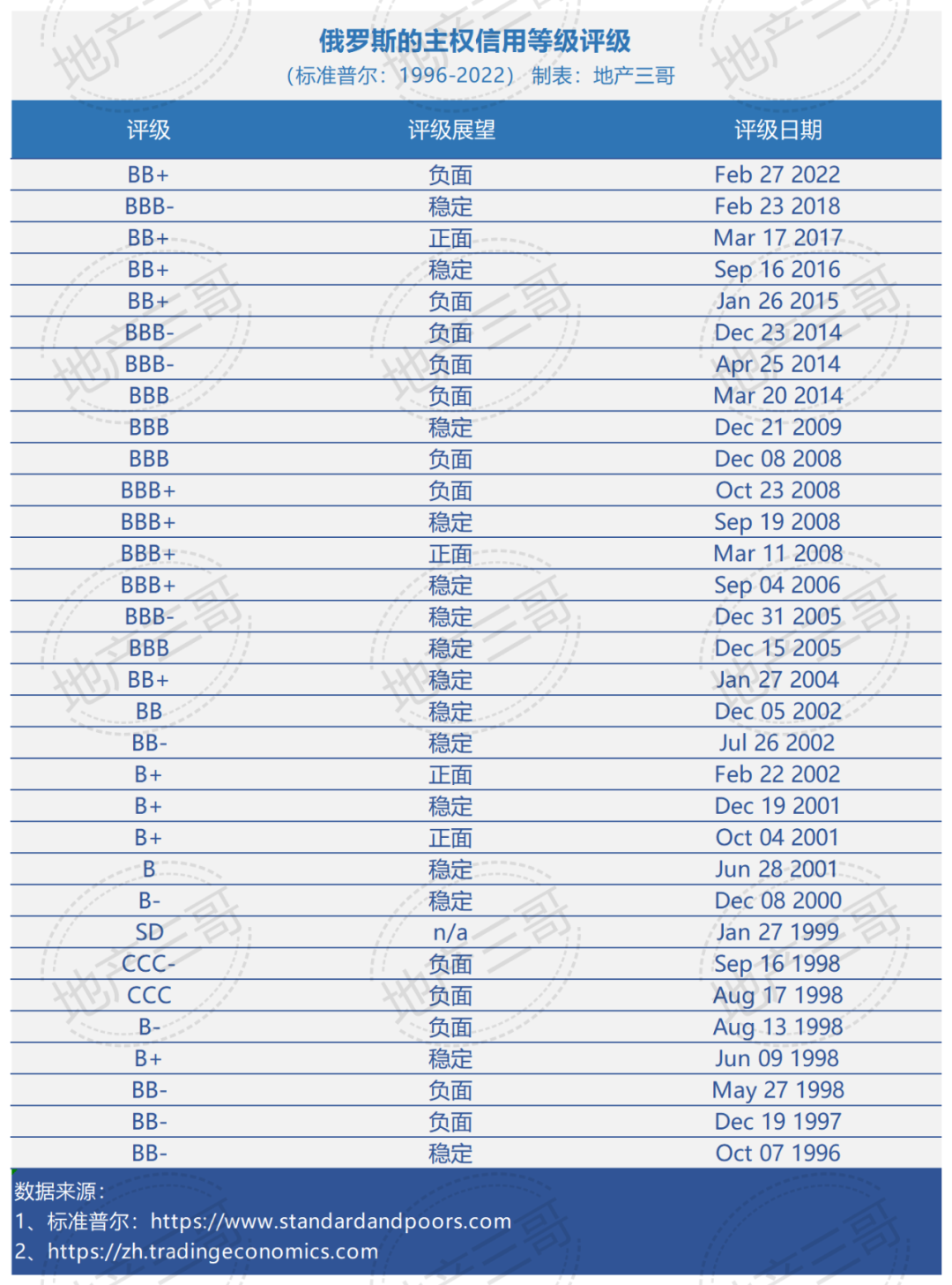 隨著俄羅斯、烏克蘭的最新沖突,標普對俄羅斯的評級又掉到了BB+/負面。