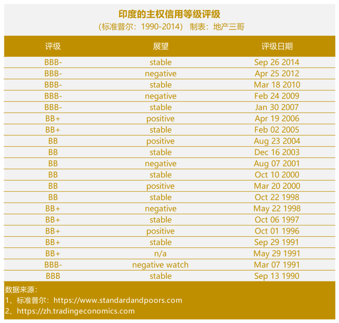 三、印度的主權信用等級評級