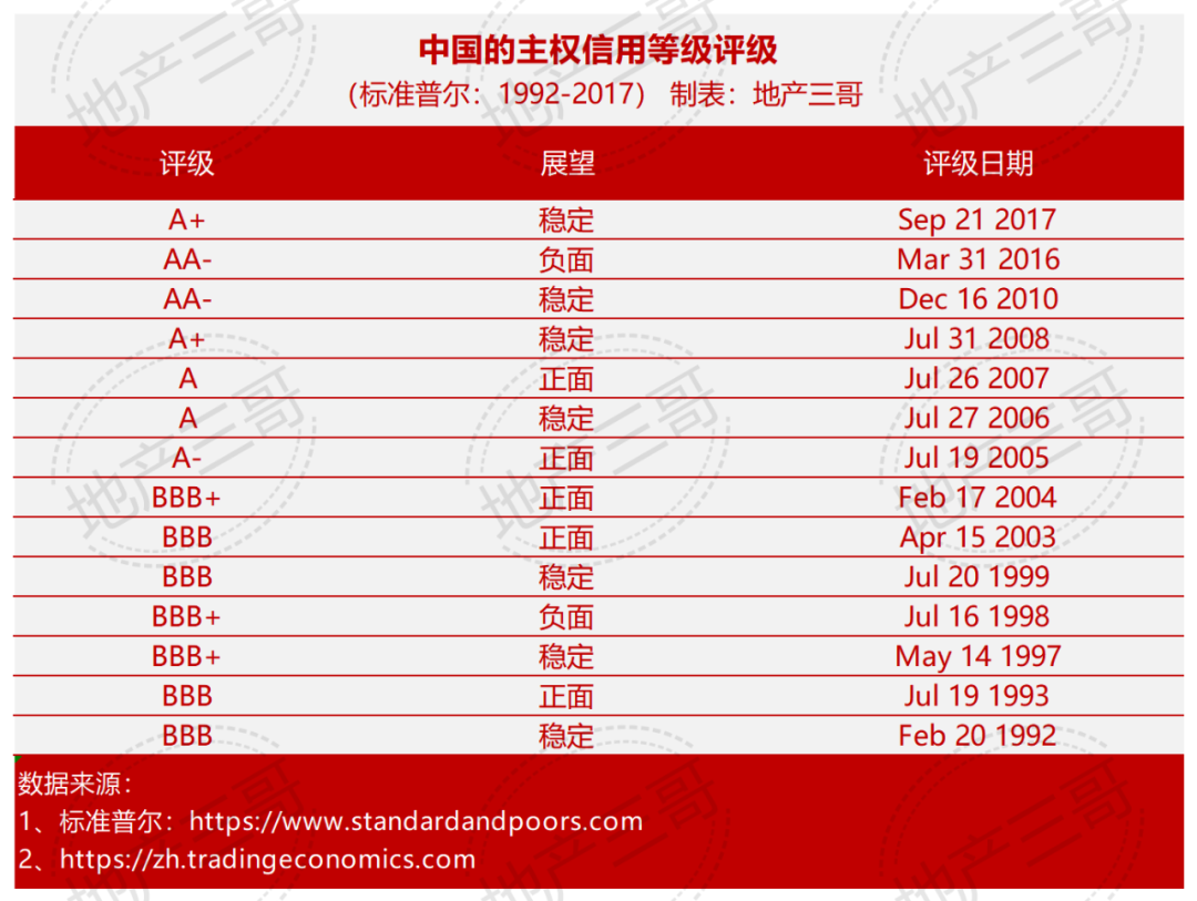 最后,近三十多年來,中國一直都在“投資級”評級行列。