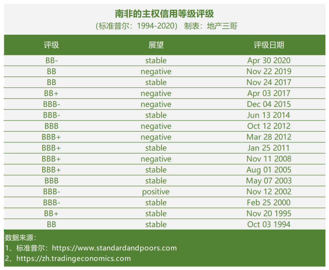 南非2000年已經進入“投資級”評級,一直比較穩定。但是2017年之后滑落跌入“投機級”。