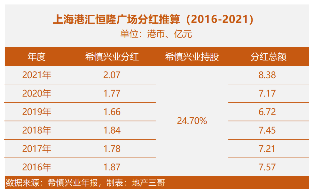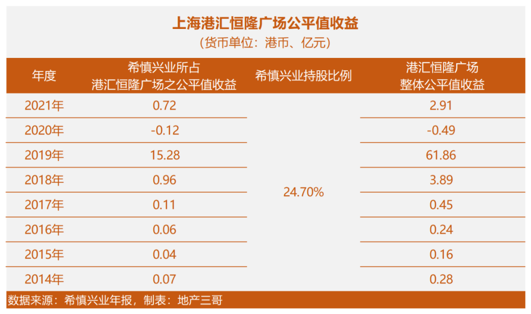 這個數字和希慎興業2021年年報中反映的基本一致:在希慎興業年報中,聯營公司港興公司營業額18.67億元港幣,折合人民幣15.8億元左右,上海港匯廣場是港興公司旗下唯一項目。