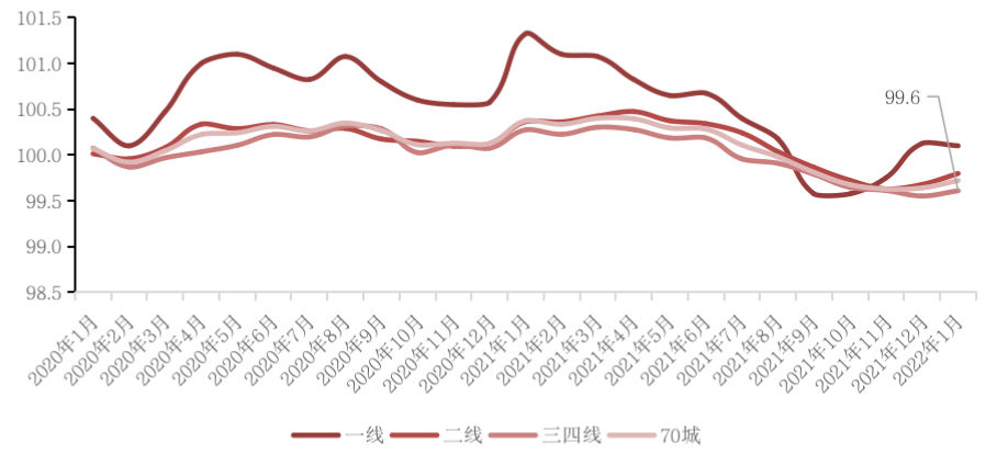 從CRIC監測的百城1月商品住宅成交情況來看,各能級城市整體表現與統計局發布的70個大中城市房價表現一致。具體到城市和項目層面,一部分二三線城市仍處于“以價換量”中,部分城市新加推項目降價明顯。