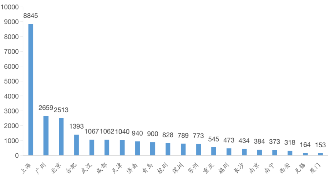 聚焦重點20城數(shù)據(jù),上海在2021年全國物業(yè)管理服務招投標市場最為活躍,全年累計中標項目達8845個。廣州排在第二位,但中標項目數(shù)量不足上海的三分之一。