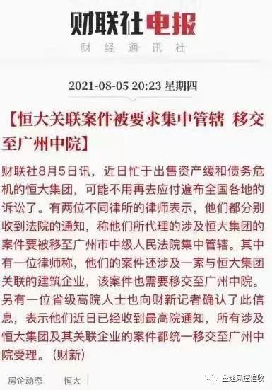 債務人的還款方式主要分三種:第一種是掙錢還款,第二種是借錢還債,有的人就是拆東墻補西墻,現在很多的人拆東墻補西墻都做不到了,借不到錢。第三種是賣資產,通過賣掉自己的股份,房子,車子等等,通過賣資產去還這個錢。比如說大家都知道的今年蘇寧開始暴發債務危機,首先就是它主業賺不到錢,財報上顯示2012年到現在9年時間,蘇寧易購包括線上店都在虧本,主業賺不到錢,其次它也借不到錢,去年問阿里巴巴借了十個億,上千億的盤子借十個億有什么用,付利息都不夠。前兩步都不行以后,最后就是賣資產。首先賣足球隊,蘇寧足球隊還欠員工的工資,去年還拿了一個中超的冠軍,拿了冠軍以后馬上就搞不下去了,就賣掉成了一個笑話,足球隊也沒有人要不得不解散,最后還是深圳國資委接盤買了點股份。現在恒大也出現債務危機,房地產這幾年特別是在四五線城市的收益都是比較差的,賺不到什么錢,它已經是上萬億的負債,現在要降負債,把負債降到五千億之內,現在到期的債權要還,只有打折賣資產還。所以恒大就急于賣房子,我一個新疆客戶6月底買了恒大的房子,買了兩層,打折的力度都到五折了。原來一萬塊一個平方,現在五千就賣,通過這樣快速回款,不然到期債務還不出的話,人家就要起訴它了。現在恒大官司已經陸陸續續的爆發了,前一段時間是宜興一個銀行和他們打官司,現在又是廣告費打官司,前陣子最高院還出了一個文件,就是恒大所有的官司必須移交到廣州中院統一裁定,現在全國債主都要起訴他了,都來不及處置和分財產,所以發了一個文要移送到廣州中院。