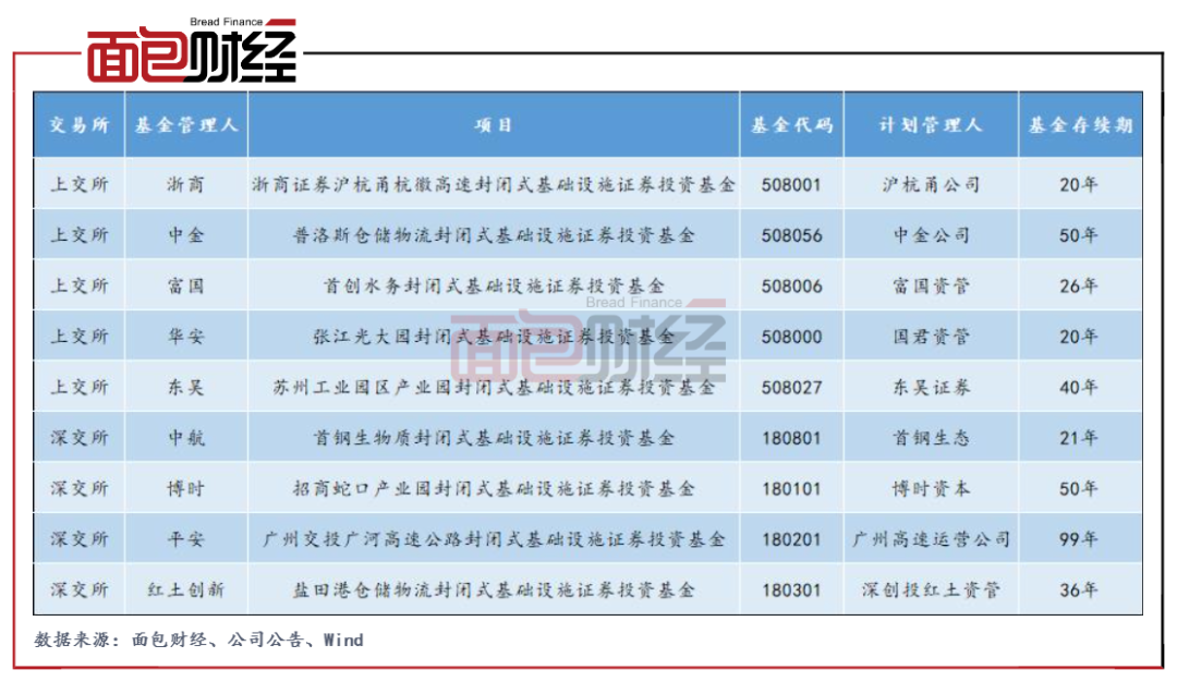 若按照9只公募REITs詢價區間下限計算,首批公募基礎設施證券投資基金(REITs)預計合計融資近300億元。其底層資產包含收費公路、產業園、倉儲物流、污水處理、垃圾處理及生物質發電等多種資產。