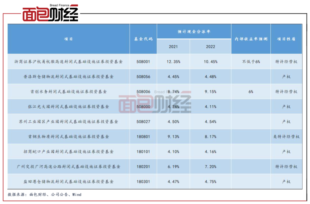首批REITs中有兩只披露了內部收益率,均為6%左右。