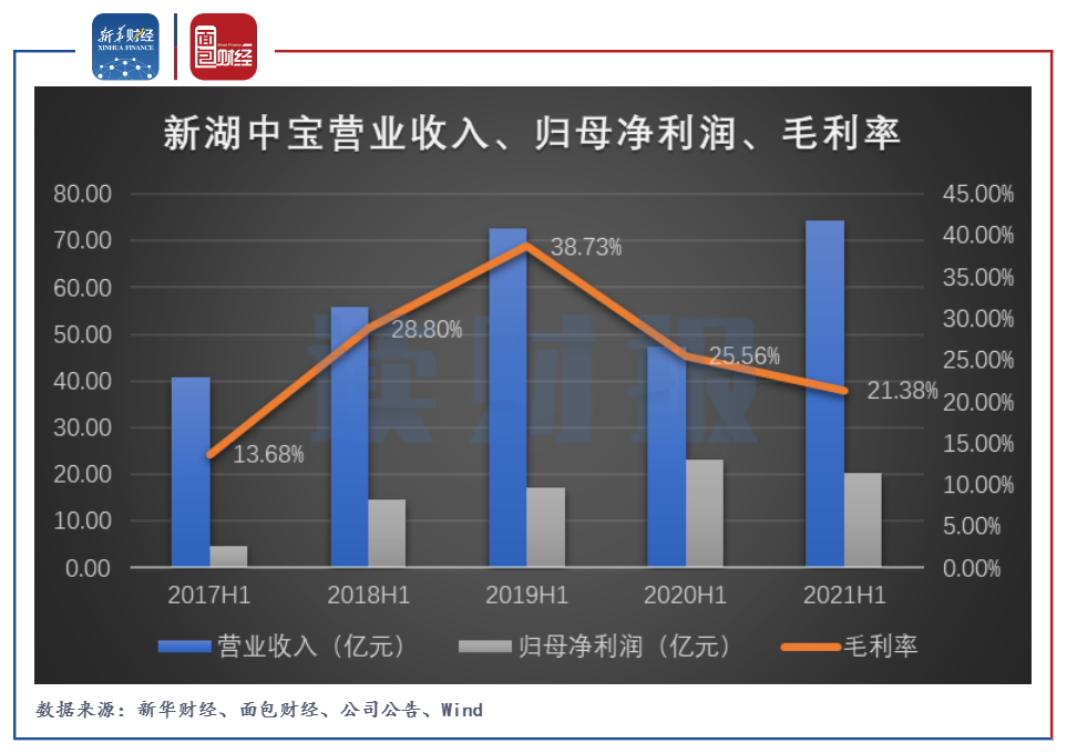 圖2:2017H1至2021H1新湖中寶營業(yè)收入、歸母凈利潤、毛利率