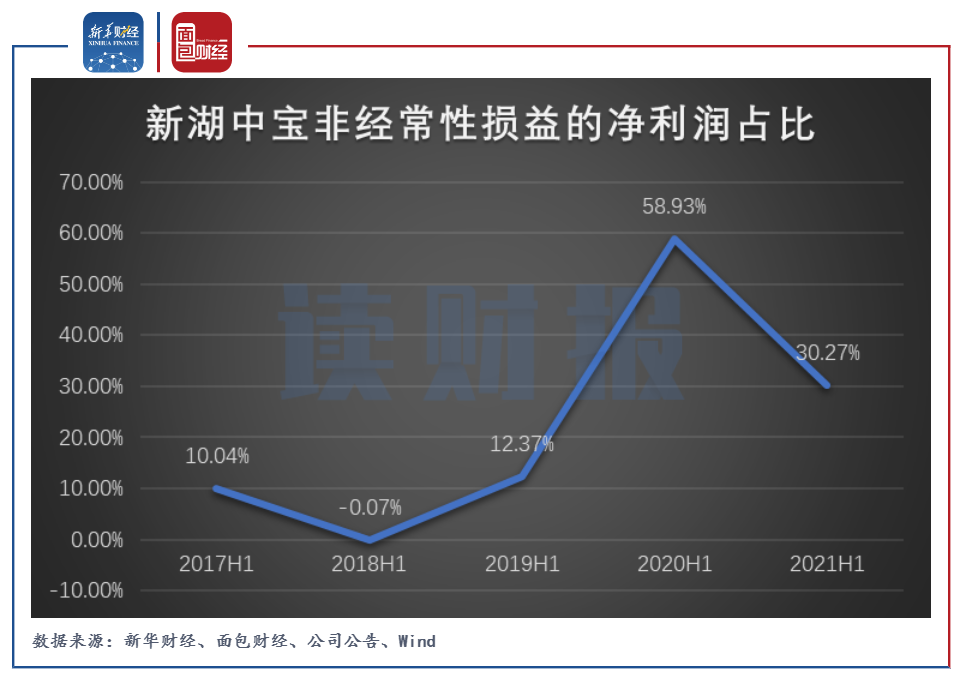 圖3:2017H1-2021H1新湖中寶非經(jīng)常性損益的凈利潤占比