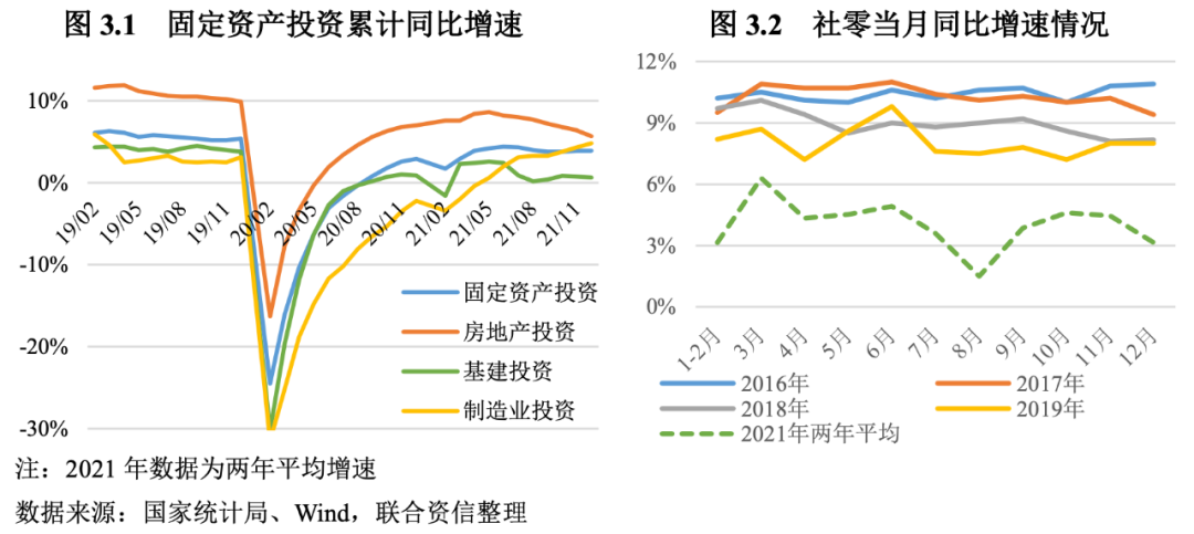 2022年雖然面臨三重壓力,但在政府穩(wěn)增長強(qiáng)力托底政策的作用下,預(yù)期增長目標(biāo)的實(shí)現(xiàn)應(yīng)該沒有大的問題。實(shí)現(xiàn)今年目標(biāo),最大的困難是克服或逆轉(zhuǎn)去年下半年以來的過快下行趨勢。去年下半年以來的過快下行,主要的原因在于高基數(shù)效應(yīng)的作用,投資增速下滑(主要是房地產(chǎn)和基建投資),消費(fèi)受疫情多點(diǎn)頻繁復(fù)發(fā)而受到嚴(yán)重抑制,以及能耗雙控等政策的嚴(yán)厲執(zhí)行導(dǎo)致的限電限產(chǎn)、部分行業(yè)整頓等。我們觀察到,去年四季度以來,政府開始政策糾偏,各行業(yè)逐步步入常態(tài)發(fā)展,過激政策對經(jīng)濟(jì)的負(fù)面影響逐漸消失。