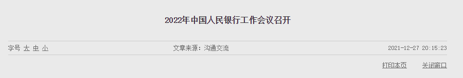 接著,2022年央行工作會議12月27日上午,以視頻形式召開。