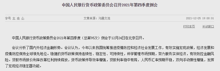 央行貨幣政策委員會2021年第四季度(總第95次)例會,12月24日在北京召開。