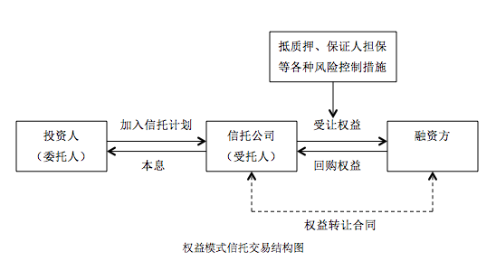 企業(yè)基于自身擁有的優(yōu)質(zhì)權(quán)益(基礎資產(chǎn)的權(quán)利無瑕疵并且現(xiàn)金流穩(wěn)定可控)與信托公司合作,通常采用“權(quán)益轉(zhuǎn)讓附加回購”等方式,從而實現(xiàn)優(yōu)質(zhì)資源整合放大的信托融資模式