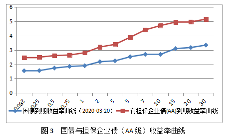 由于租賃期限是偏長期的,固定租金是常用的方式,但是不管是固定利率還是浮動利率租賃,未來利率走勢的不確定性總是存在的。如果與利率走勢相逆,再好的項目也可能是賠錢的。所以研究利率走勢,分析收益率曲線,對租賃公司的合理定價是很重要的。圖3為國債與擔保企業債(AA級)收益率曲線。