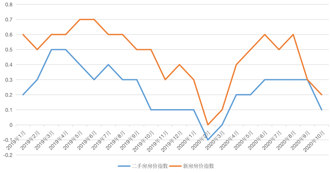 值得注意的是,據易居研究院測算,70城二手房同比漲幅平均值在2016年11月達到最大值以來持續下滑,至今年10月,二手房房價指數同比漲幅平均值已下降至2.1%。