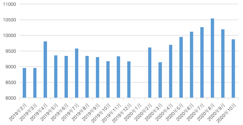圖:2019年以來全國房價月度變化(單位:元)
