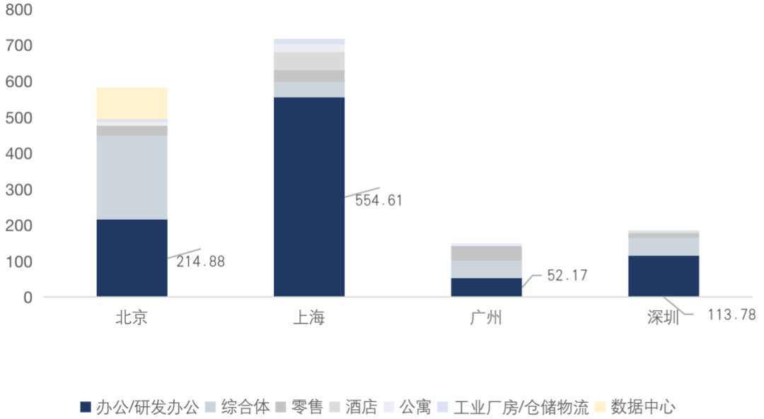 大宗投資者最青睞的物業類型依然為寫字樓,投資邏輯也未發生改變,一線城市核心地段的優質類商辦資產更受關注; 優越的地理位置,在各業態中較強的抗風險性及長期的投資價值均為寫字樓受資本長期追捧的重要因素。