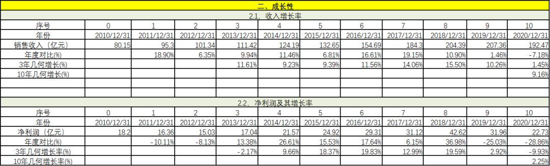 從成長性上看,過往10年保持12.99%的成長,還算行,但是,凈利潤增長率太低了,不忍直視。凈利潤沒有隨著企業的增長而增長,這可能說明企業的經營存在問題。
