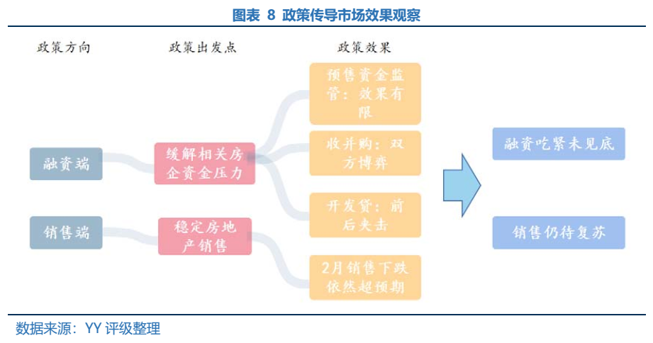 但就目前來看,融資端金融額度投放多而實質收并購紓困少、銷售端政策調控放開多而實際消費意愿修復弱,全行業現金流的實質改善,依賴于后續樓市繼續松綁效果的進一步確認。