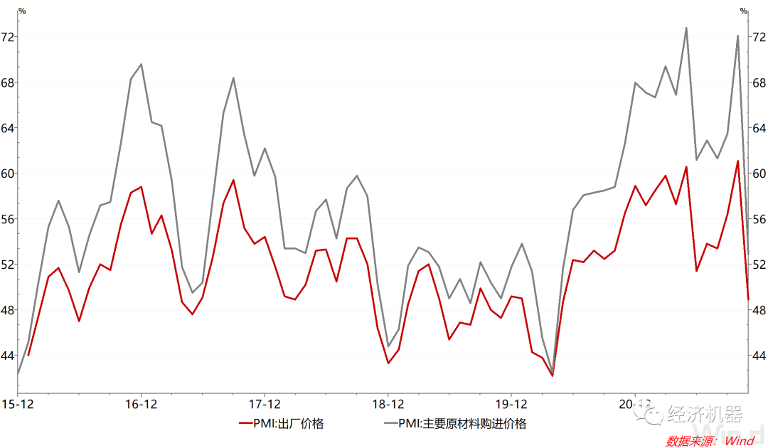圖4 PMI出廠價格與原材料購進價格