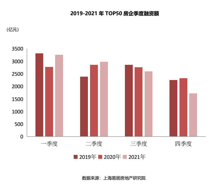 2021年,在“房住不炒”和“三道紅線”、房地產貸款集中度政策出臺背景下,全年政策先緊后松,房企融資呈現供需端持續收緊的態勢。