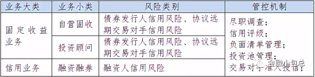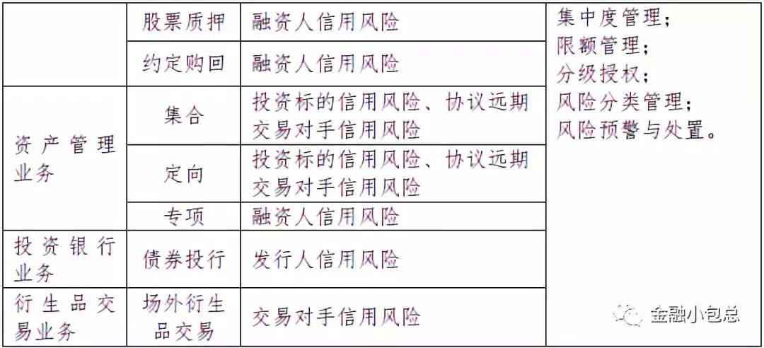 首先,買方信用風(fēng)險(xiǎn)最大的特性就是買方所有信用風(fēng)險(xiǎn)類業(yè)務(wù)的敞口都和資本市場(chǎng)關(guān)聯(lián)性很強(qiáng),如下表二 證券公司信用風(fēng)險(xiǎn)相關(guān)業(yè)務(wù)所示: