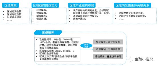 區(qū)域維度看,可以通過(guò)整理區(qū)域政策、區(qū)域政府財(cái)政實(shí)力情況、區(qū)域產(chǎn)業(yè)結(jié)構(gòu)分布、區(qū)域內(nèi)發(fā)債主體關(guān)系,搭建自己的區(qū)域數(shù)據(jù)庫(kù),如下圖: